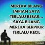jangan menyerah untuk menggapai cita cita kalian walaupun banyak yg menghujat jangn menyerah kawan...seseorang yg meremehkan cita cita kita itu karna mereka tidak mempunyai cita cita yg sama besar dengan kita..... aku menghabiskan masa remajaku untuk mengggapai cita cita sedangkan mereka hanya bisa menghabiskan uang orangtua saja..